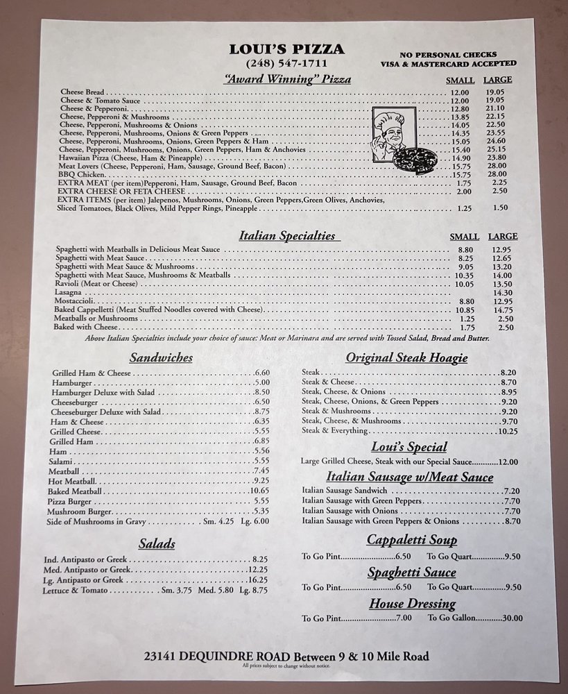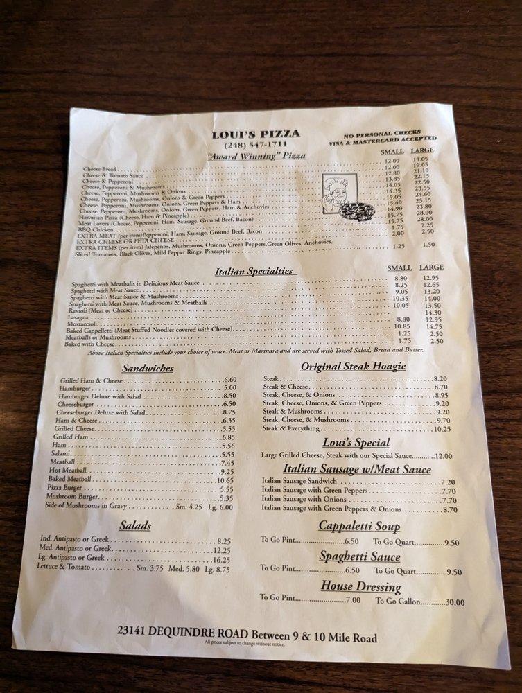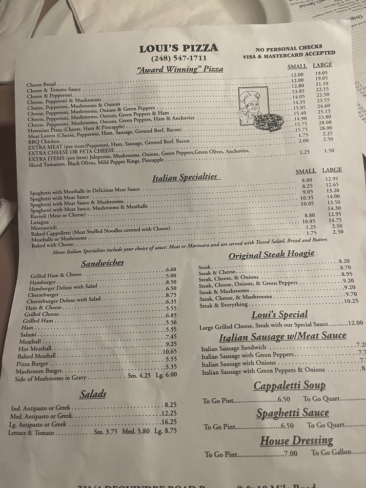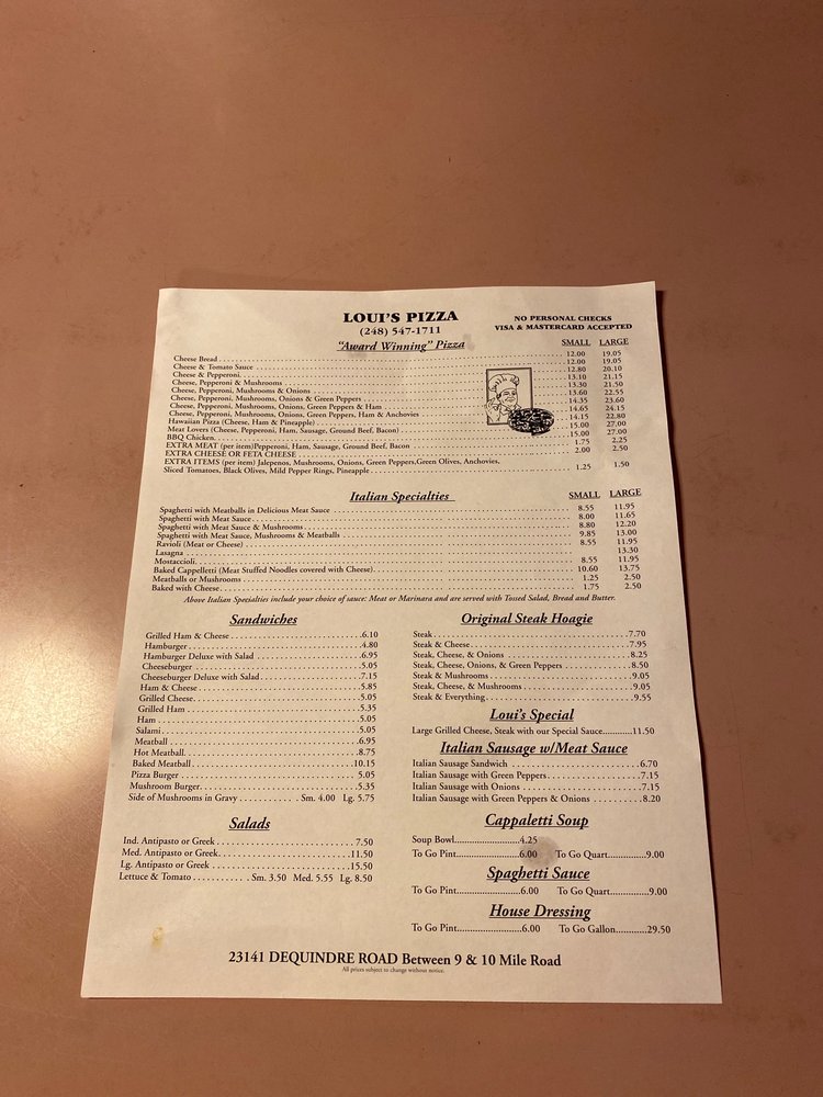 Loui’s Pizza Menu (Update 2025)